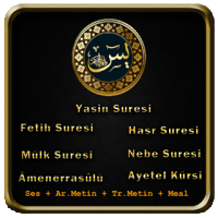 Uygulamaya Yasin, Fetih, Mülk, Amme, Haşr, sureleri ve Amenerrasulü , Ayetel Kürsi sesli açıklamalı olarak konmuştur. Arapça metni bilmeyenler için Türkçe okunuş da eklenmiştir. İnternetsiz de kullanabileceğiniz güzel bir sesli sure uygulamasıdır.